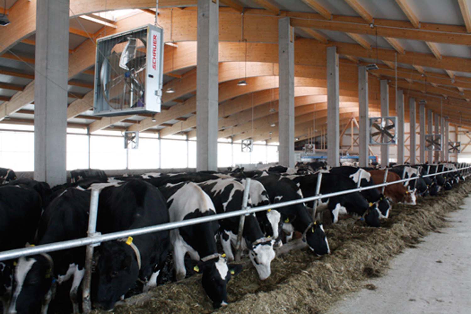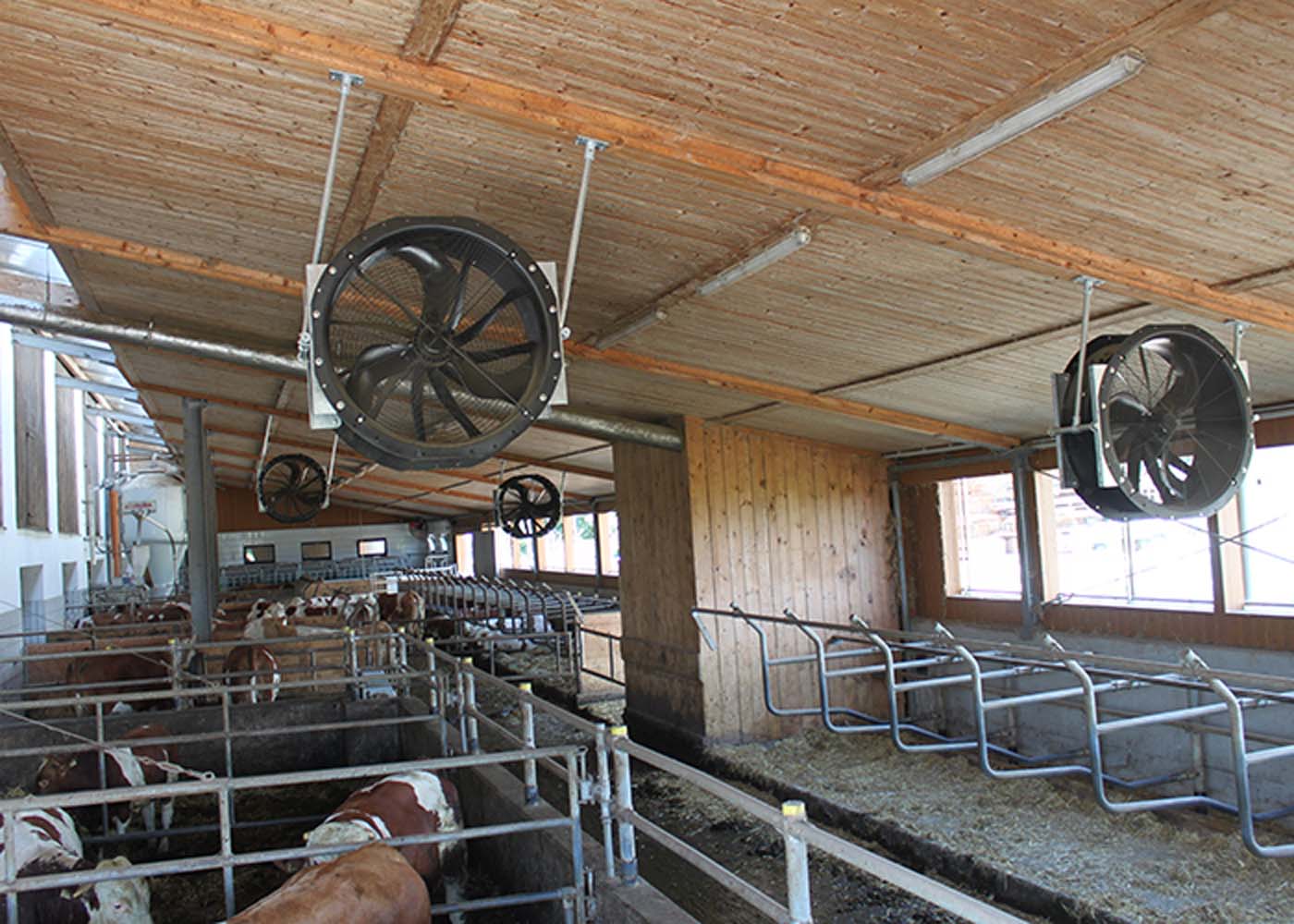 Dober in cenovno ugoden način za preprečevanje vročinskega stresa pri govedu je, ustvariti zračni premik v hlevu s pomočjo ventilatorjev za kroženje zraka. Z izjemno tihim sistemom Cow-Cooler se lahko celo nizki hlevi optimalno prezračujejo, da ustvarijo prijetno okolje za živali in ljudi.